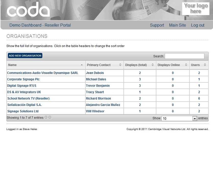 “This is a significant development for our channel as it brings all the benefits of CODA to the bigger players and frees CODA for worldwide distribution,” said Steve Hales, Head of Sales & Marketing at Camvine.  “Feedback from major channel players that have assessed CODA has been extremely positive.  They are particularly impressed with the straightforward nature of the content management system, the ‘plug and play’ simplicity of the hardware and ease with which users can display live, personalised content”.